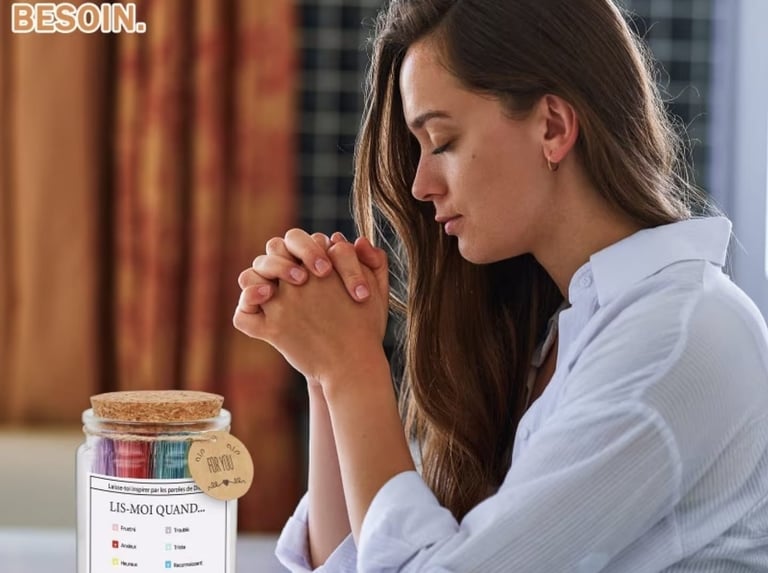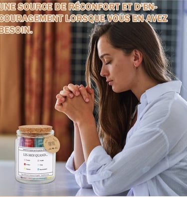 Chaque pot contient des versets sélectionnés pour éclairer chaque moment de la vie : joie, doute, stress, gratitude…